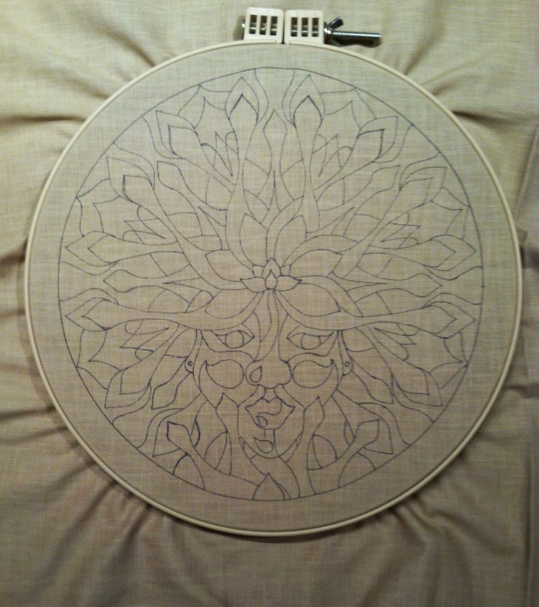 Saturday February 11, 2017 and I’m busily working on the second piece in my Resplendence series – punch needle, bead, and fabric representations of women wearing mandala-like crowns.